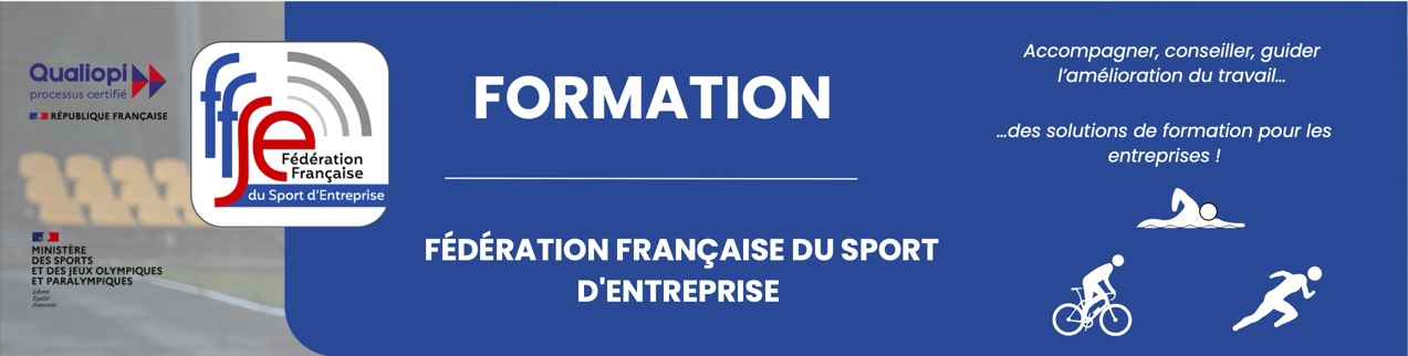 La Fédération Française du Sport d’Entreprise (FFSE) est un organisme de formation certifié Qualiopi qui permet de faire prendre en charge les formations par les fonds de la formation professionnelle. Elle propose une variété de formations pour les entreprises et les employés. Ces formations (certifiées QUALIOPI) certifiantes visent à promouvoir et à développer les bienfaits de l’activité physique et sportive dans le cadre professionnel, notamment en termes de santé, de motivation, de performance et de bien-être.